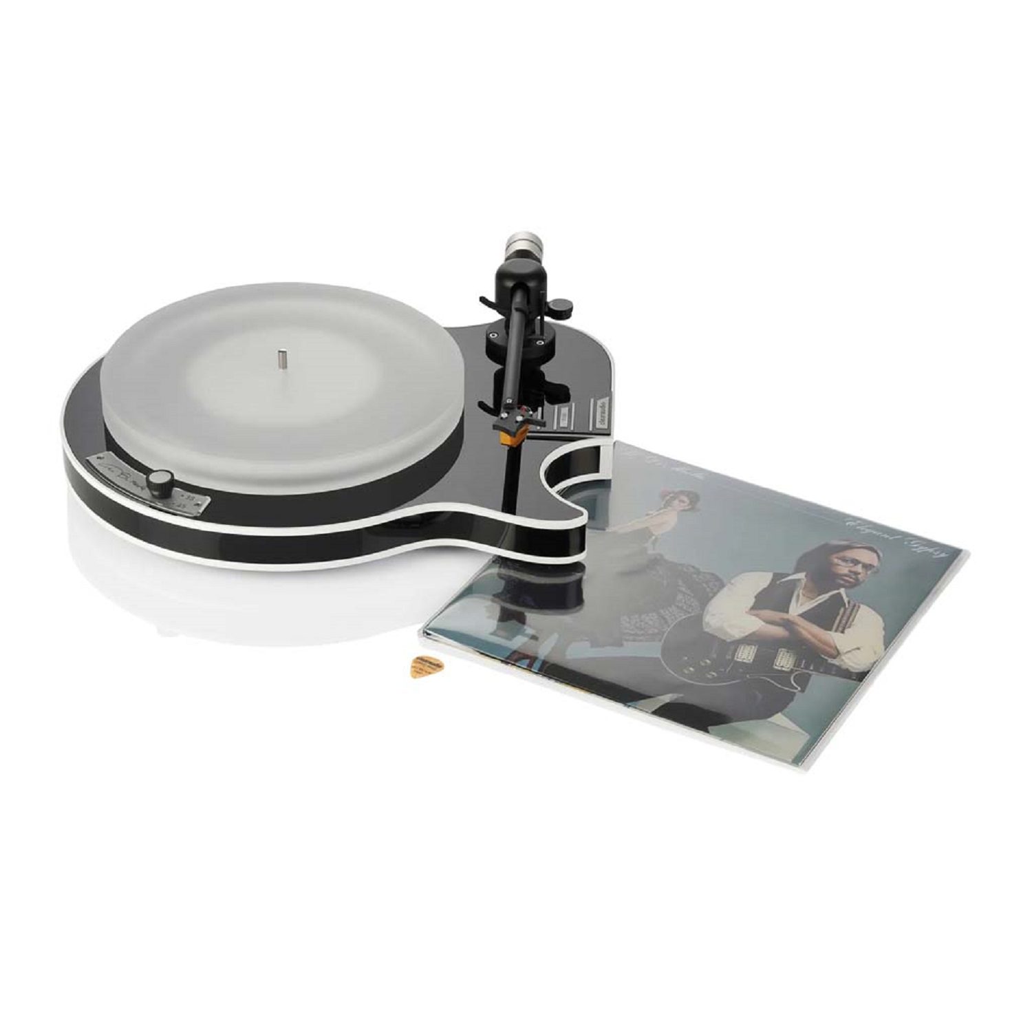 En el corazón de este tocadiscos se encuentra un cuerpo de fibra de madera de alta densidad, diseñado con la forma de una guitarra eléctrica, una clara muestra de la estrecha colaboración con el propio Al Di Meola. En su interior, incorpora la más avanzada tecnología Clearaudio, lo que lo convierte en un auténtico dispositivo de alta gama.