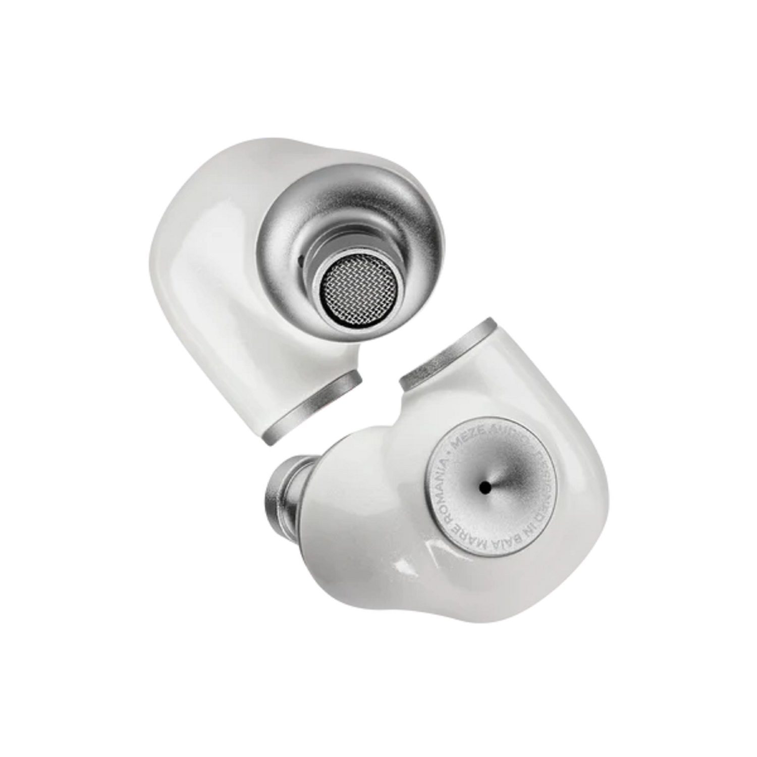 Auriculares con cable Meze Audio Alba: vista lateral del altavoz y carcasa blanca perlada