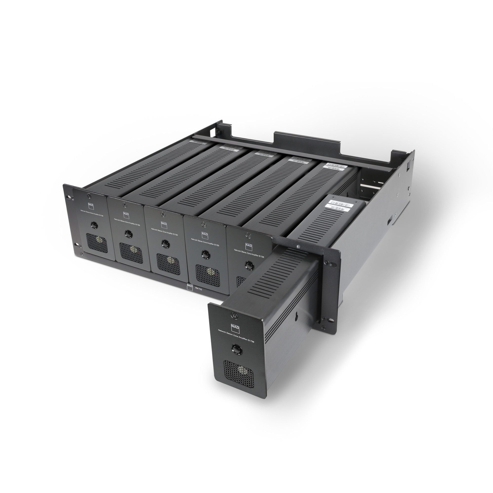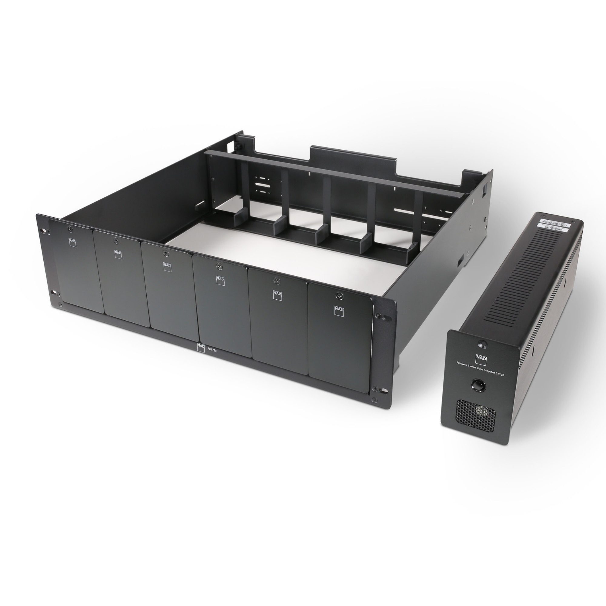 Forjado para albergar uno de los productos de IC más cruciales de la NAD hasta la fecha, el sistema de bastidor RM 720 es un componente integral de cualquier sistema de audio doméstico personalizado. Para contener adecuadamente el CI 720, NAD creó el RM 720, que puede albergar hasta seis CI 720 sin ninguna modificación. Con el RM 720 a su lado, será capaz de liberar todo el potencial del CI 720.